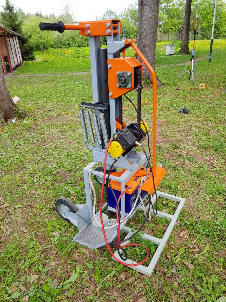 Соққы массасы (соғушы) автомобиль аккумуляторынан (65–180 А/сағ) қуат алатын электр лебедкасымен зарядталған қуатты керме серіппелері арқылы жеделдетіледі. Көздің жұмыс істеуінің ең аз мерзімі - 3 секунд.
