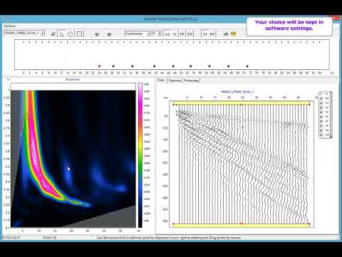 Анализ распространения поверхностных волн, реализованный в модуле MASW, позволяет из полевых данных получать вертикальные профили поперечных скоростей. В программе реализован полный цикл обработки данных от получения дисперсионных кривых до построения скоростных разрезов, поддерживается мультимодальный режим.
